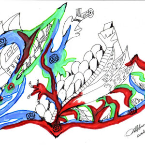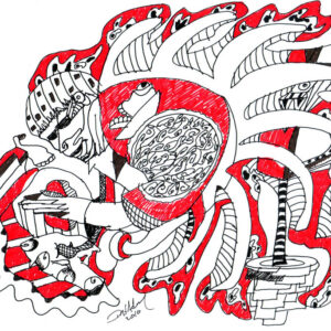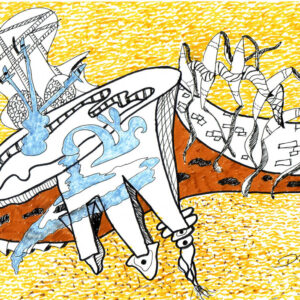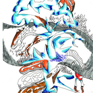 During my begging of my drawings experiences and experiments, I want it to leave an impression of my mexican origin. I was impress for the Aztec and Maya Codces and I used the iconography of those Codices to build a new language of my perception of the world, of my feelings and what I was living in the moment I have creating the works.