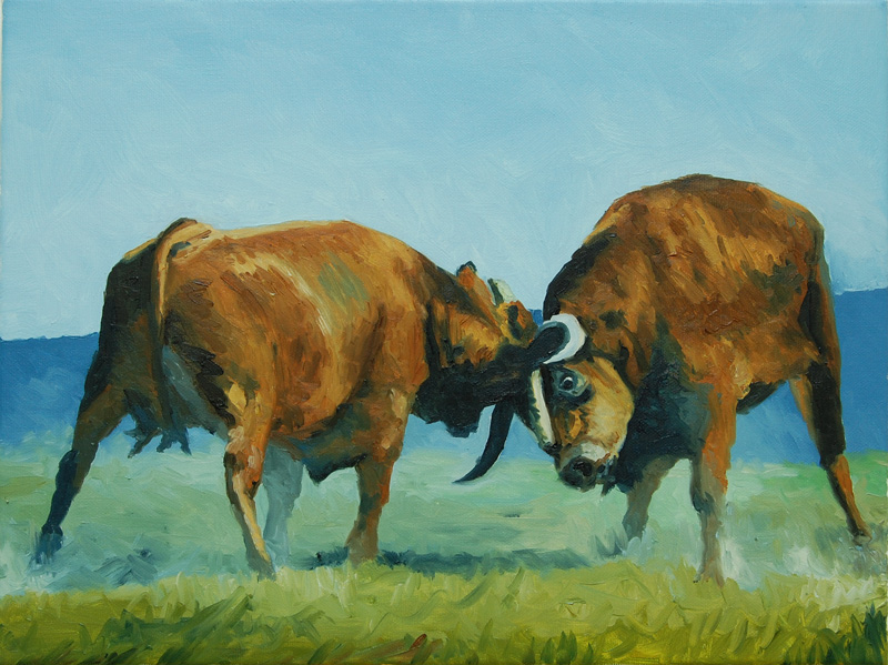 Martinho Costa – Luta de Bois (Bull Fight) Oil on canvas – 31x41cm – 2009 Original Artwork